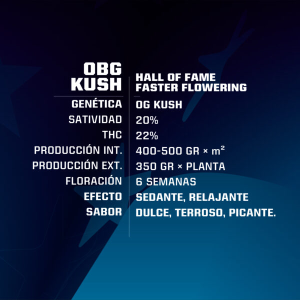 Desde BSF SEEDS seguimos marcando tendencia y presentamos una nueva variedad representativa del rap, la OBG Kush Fast Version. Creada en colaboración con el rapero venezolano Akapellah, dejamos sus gustos plasmados en esta variedad; Una índica, rápida y potente, de la cual no revelaremos sus parentales para mantener su misticismo. Su nombre (OBG) proviene de la compañía que representan Akapellah, K12 y Relah; tres de las personas más influyentes en el rap latinoamericano. Para crearla tomamos de nuestra reserva las mejores Kush, trabajadas con nuestro parental especial auto, seleccionando la versión más rápida con un periodo de floración que va de los 40 – 42 días, siendo una de las más rápidas de nuestro banco.